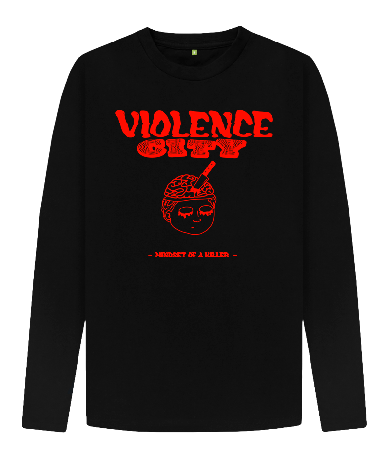 Longsleeve noir inspiré du titre « Mindset of a Killer » de Violence City, avec le visuel officiel imprimé à l’avant. Le design sombre et percutant traduit l’état d’esprit du morceau : une plongée dans les pensées, la tension mentale et la brutalité émotionnelle, fidèle à l’univers intense et sans compromis du groupe.